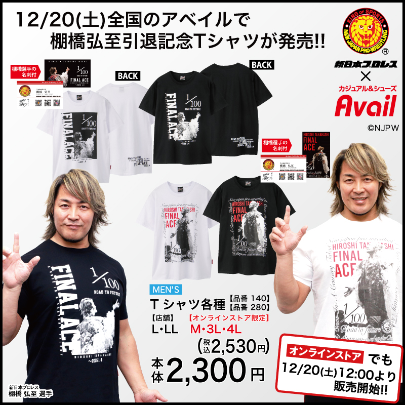 【新日本プロレス×アベイル】棚橋弘至選手引退記念Tシャツ各種が12/20(土)アベイルに登場!! オンラインストアでも同日12時から販売開始ラボッ!!