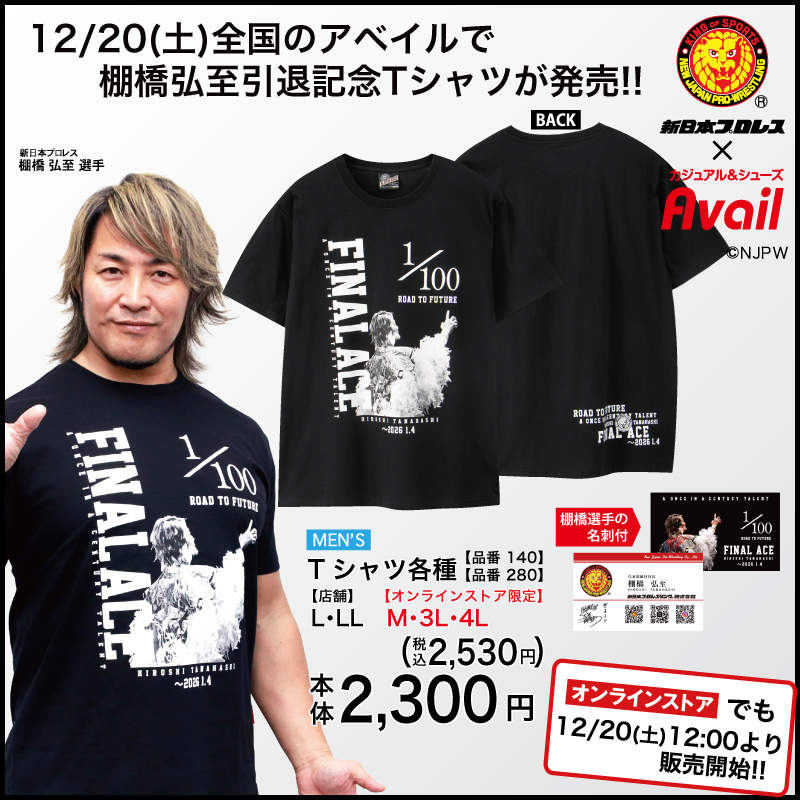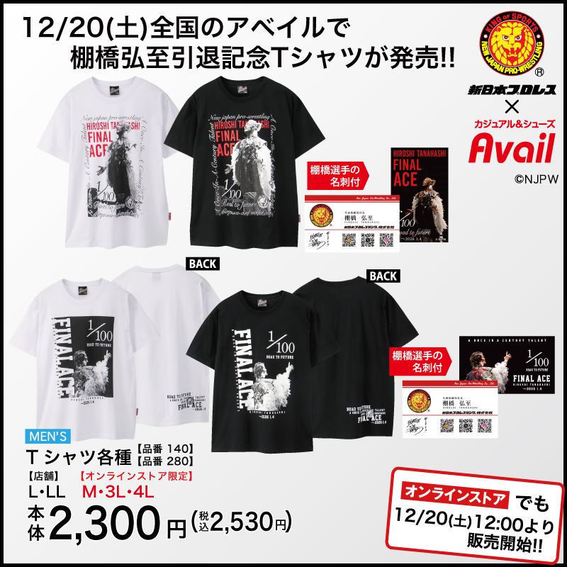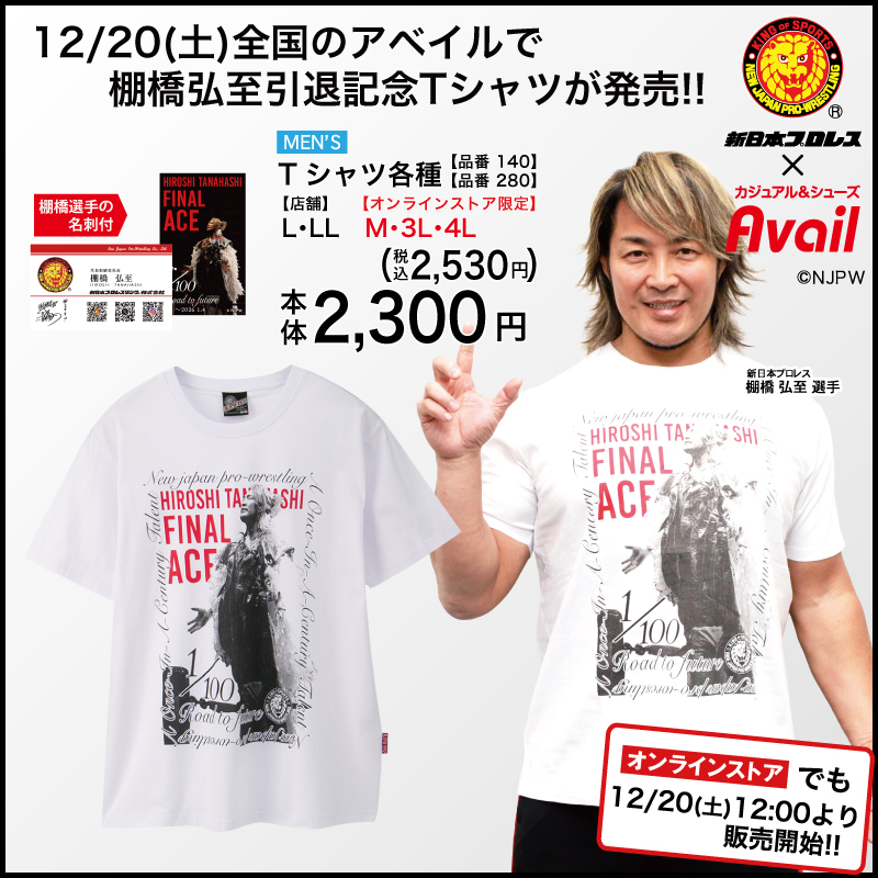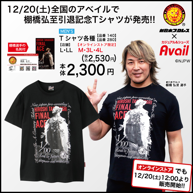 2026年1月4日に引退を迎える棚橋選手に最大限のリスペクトと感謝を込めたアベイル限定のオリジナルデザイン!